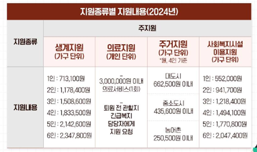 - 4인가구 1.172만원 이하 (주거지원은 가구당 200만원 추가)